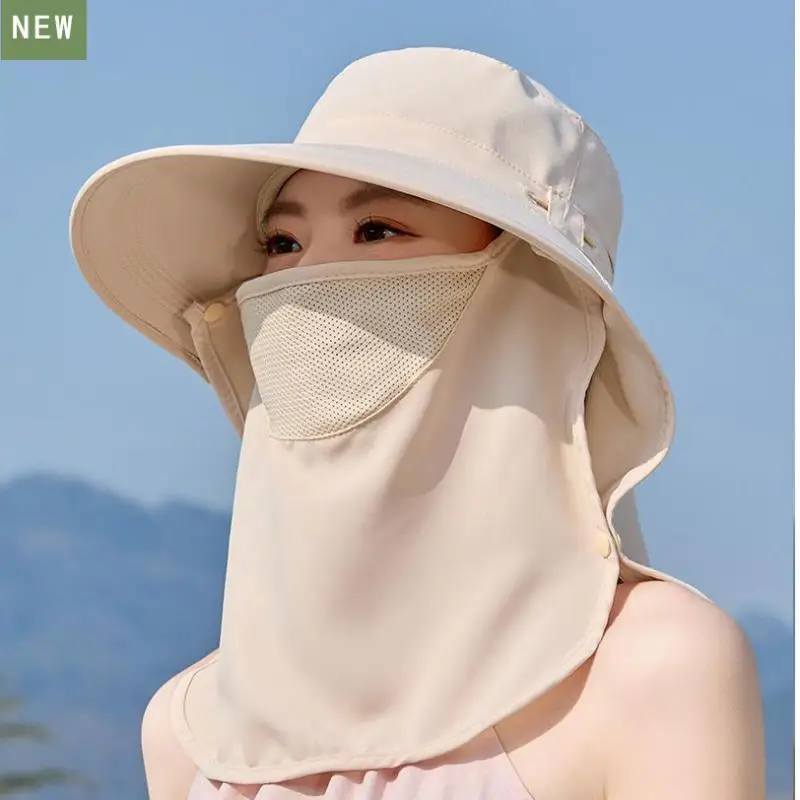 Summer Hats For Women Sun Hat Uv Protection With Mask Shawl Outdoor Sunscreen Bucket Hat Thin Sunhat Casual Sunshade New