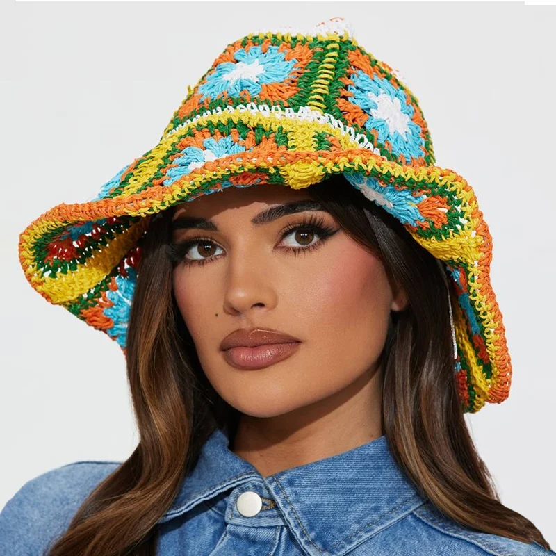 NEW Y2K beach flower Straw Hat Summer Women Visor Bucket Hat Fisherman Hat Hand weaving Panama Girl Fishing handmade Sun Hats