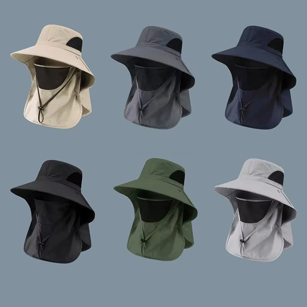 Summer Sun Hats UV Protection Outdoor Hunting Fishing Cap For Men Women Hiking Camping Visor Bucket Hat Neck Flap Fisherman Hat