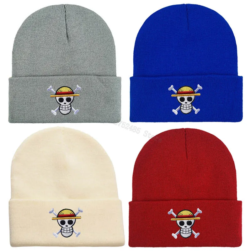 One Piece Knitted Hats Luffy Zoro Skull Embroidery Caps Fashion Men Women Winter Warm Beanie Cartoon Anime Bonnet Accessories