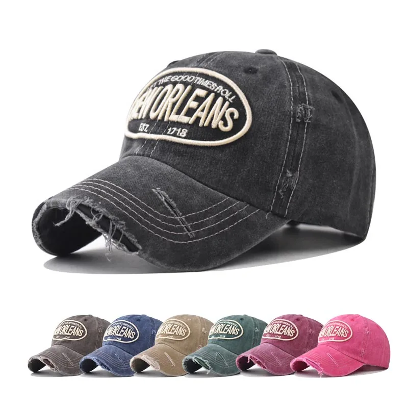 Vintage Washable Cowboy Baseball Cap Embroidery Snapback Hat for Men Women Worn Out Hip Hop Caps Adjustable Solid Cotton Sun Hat