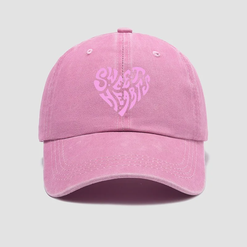 Pink heart-shaped letter printed baseball cap, versatile for daily use, sweet girl's hat, outdoor sun protection and shading