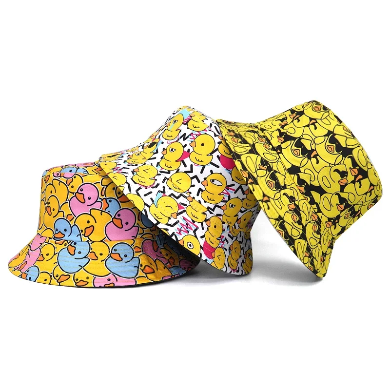 Duck Print Bucket Hats for Men Women Summer Sunshine Fisherman Hat Reversible Outdoor Sunscreen Hip Hop Panama Sun Gorras