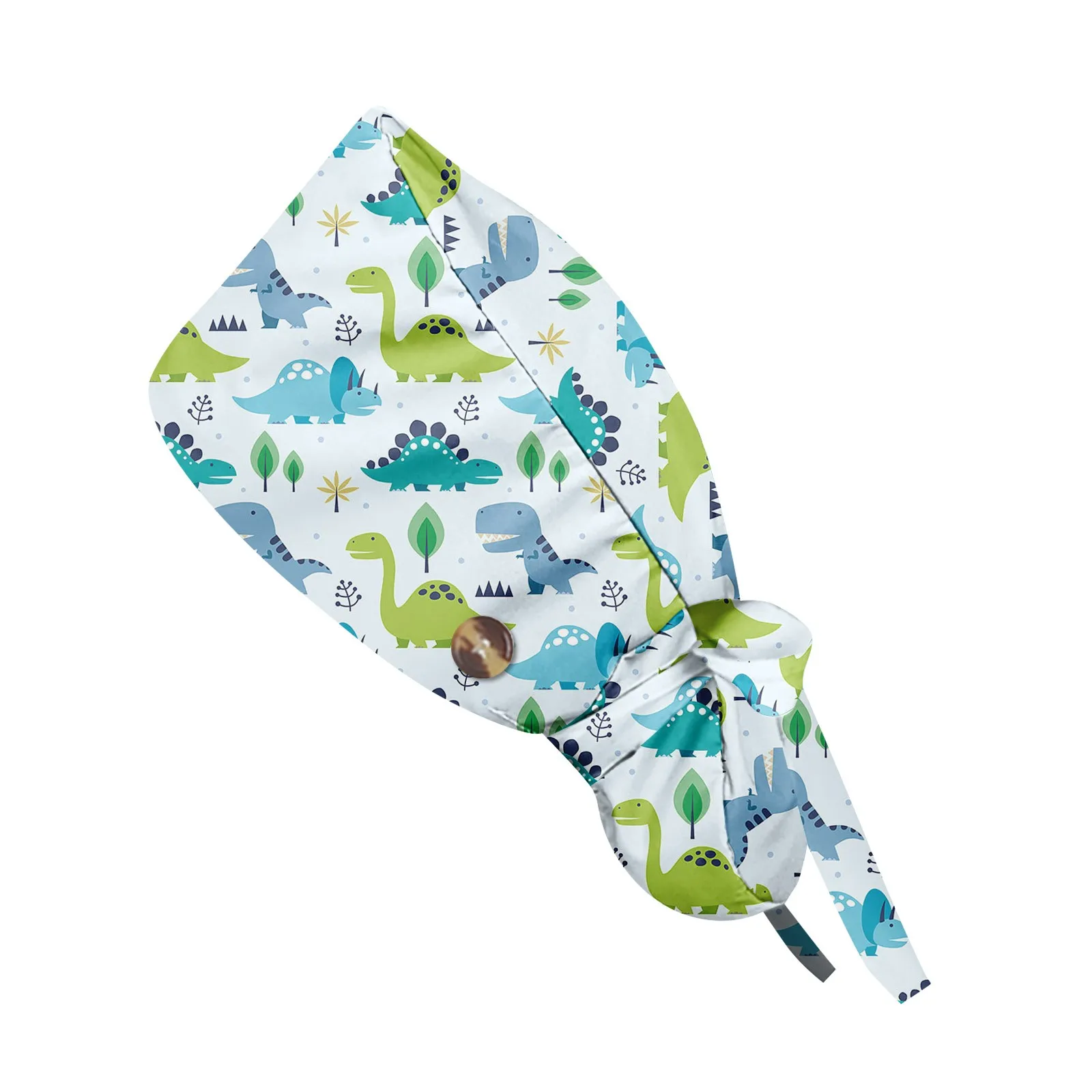 Long Hair Work Hat Fashion Cartoon Print Adjustable Work Cap Beauty Salon Nursing Cap Female Surgical Hat Scrub Caps Acces