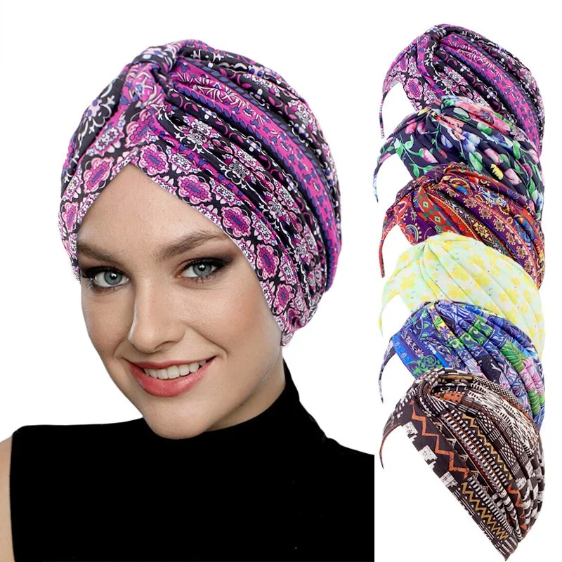 New Women's Floral Print Turban Head Wrap Muslim Hijab Beanies Cancer Chemo Beanies Cap Headwear Cap Bonnet Hair Loss Hat