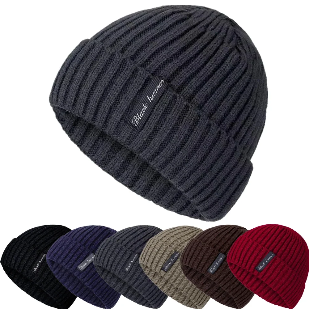 Unisex Letter Labal Winter Hats Solid Color Knitted Hats For Men Women Beanie Cap Outdoor Plush Fur Lining Warm Hats  Read more