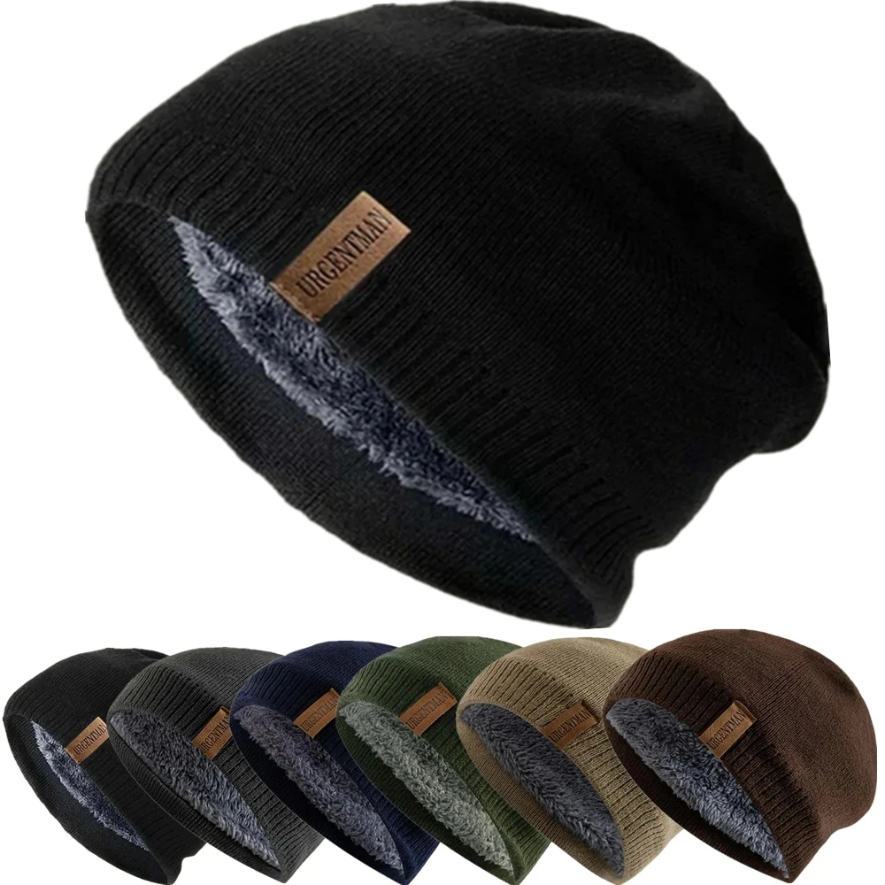 New Unisex Slouchy Winter Hats Outdoor Warm Hats For Men Women Plush Fur Lined Knitted Hat Fashion Ski Beanie Cap