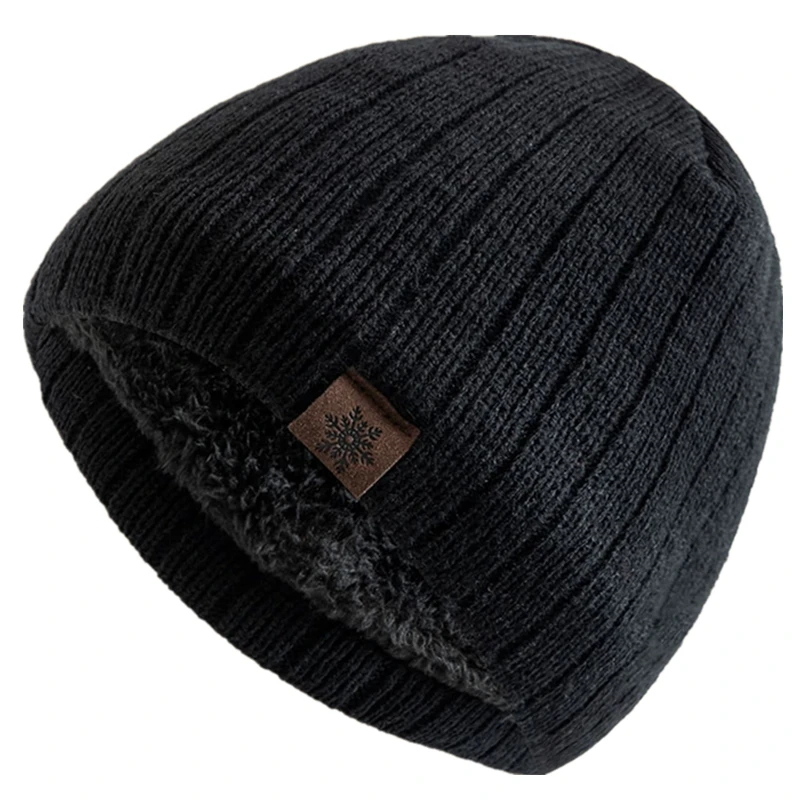 Unisex Snow Labal Winter Hats Solid Color Knitted Hats For Men Women Beanie Cap Outdoor Plush Fur Lining Warm Hats