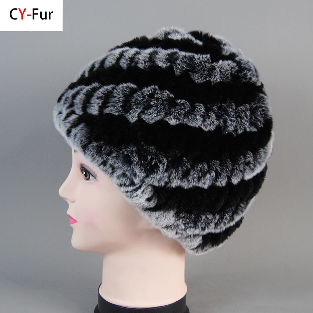 Hot Sale Lady Real Rex Rabbit Winter Fur Hat For Women Russian Real Fur Knitted Cap Headgear Winter Warm Women Hat Beanie Hats
