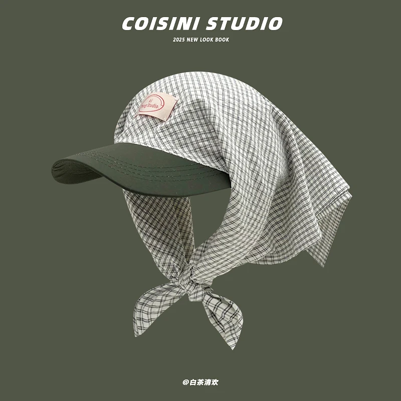 Retro Patch Color Matching Plaid Strap Sun Hats for Men and Women Summer Travel Sun Protection Fashion Hip Hop Headscarf Cap