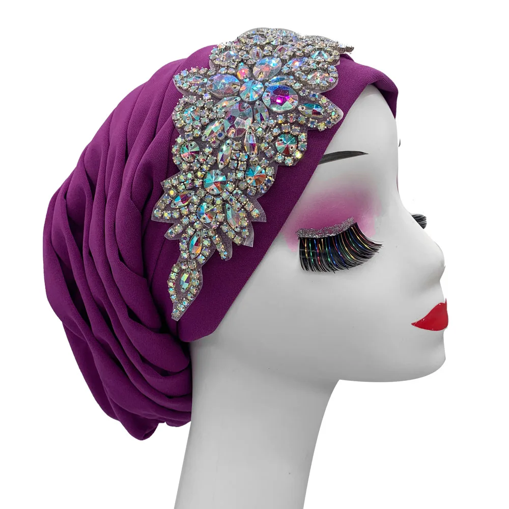 Luxury Rhinestones Turban Cap for Women Pleated African Head Wraps Muslim Hijab Lady Headscarf Bonnet Turbante Mujer  Read more