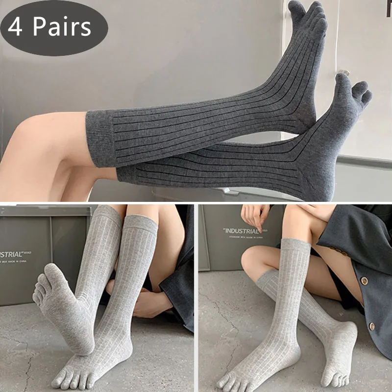 1/4 Pairs Toe Socks Long Stockings Women Girl Cotton Striped Solid Keep Warm Simple Leg Pile Student Five Finger Thermal Socks