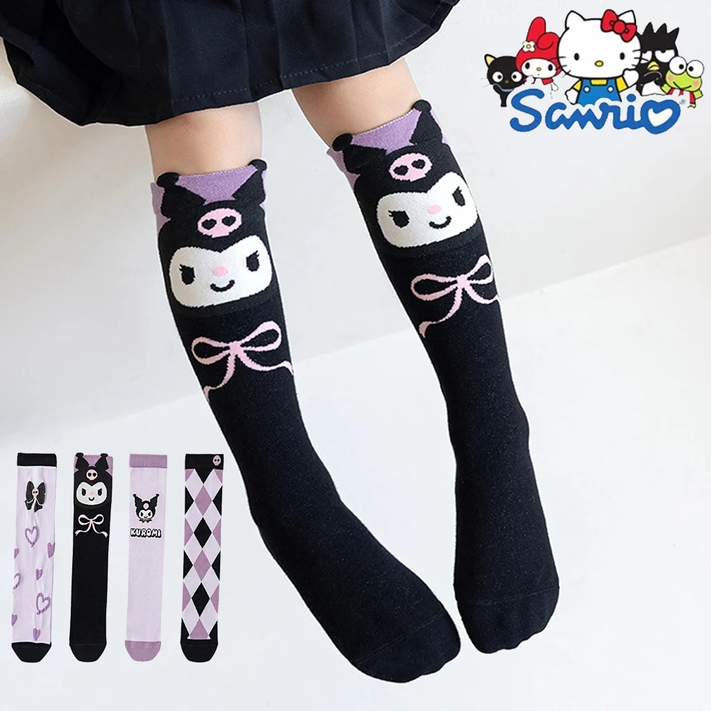 Kuromi Girls Socks Sanrio Kawaii Little Witch Stockings Purple Combed Women's Exquisite Soft Cotton Mid-tube Socks