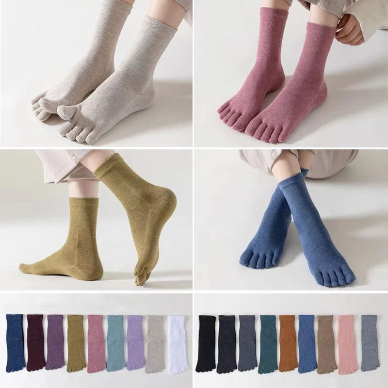 5 Pairs Fashion versatile Five Finger Socks Women Cotton Toe Socks with Separate Fingers Calf Crew Sports Socks Mid Tube socks