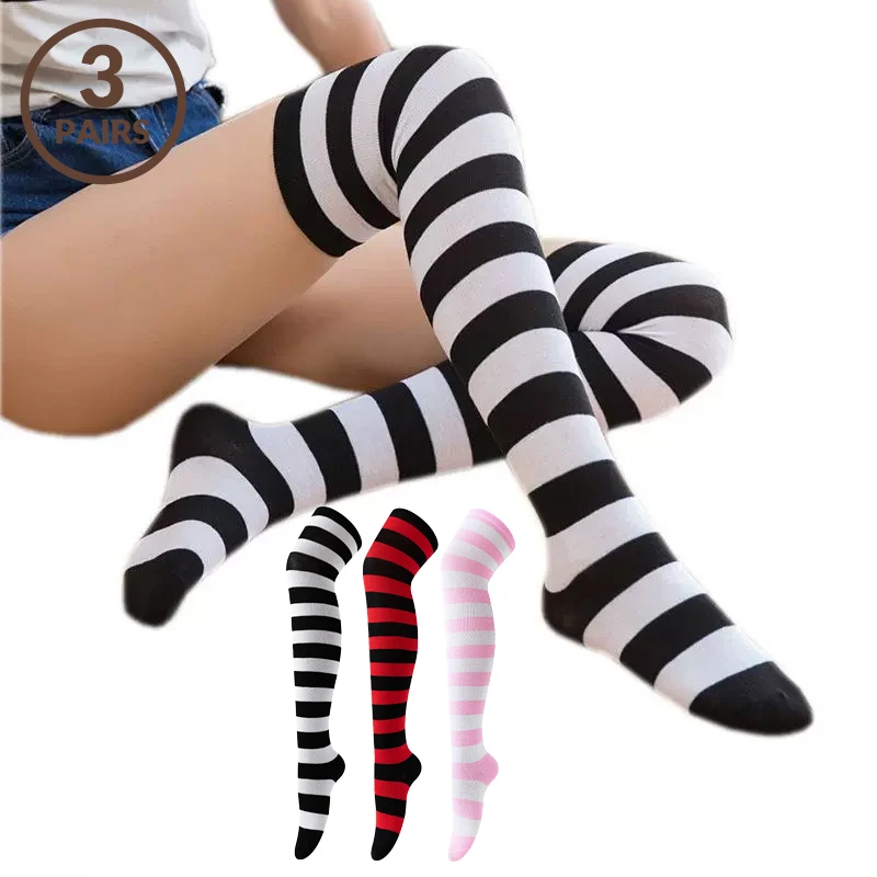 1/3Pairs Women Over Knee Long Stripe Printed Thigh High Patterned Socks Knee High Long Stockings Thigh High Striped Stockings  Read more