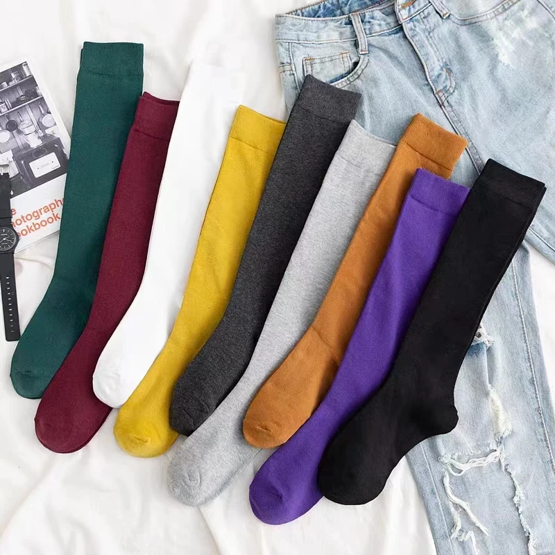 Women Calf Sock Cotton Casual Knee High Socks White Black Solid color Fashion Female Girl Party Dancing Sexy Long Sock