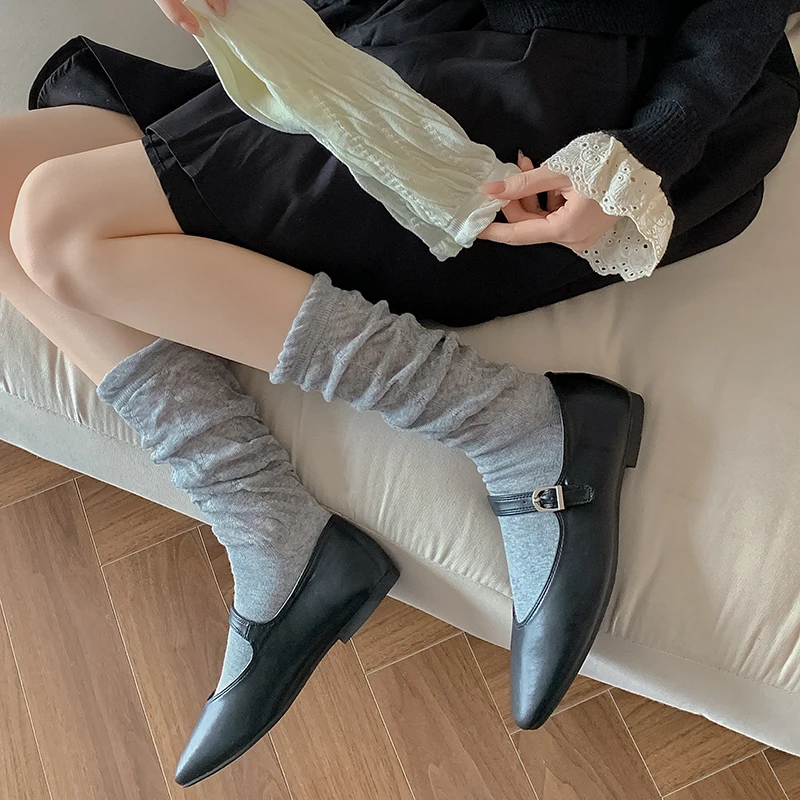 Women Stockings New Preppy Style Solid Color Knee High Socks For Woman Casual Fashion Thin Breathable Loose Socks Ladies Comfy
