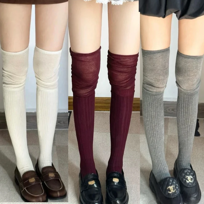 Lolita Thigh High Stockings for Women Trendy Casual Over The Knee Female Red Long Socks Thermal Warm Cotton Tall Tube Leggings