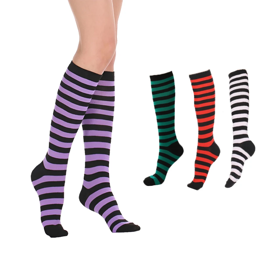1 pair Women's knee high socks thigh socks cute green, white, red, purple striped sexy slim fit long tube socks