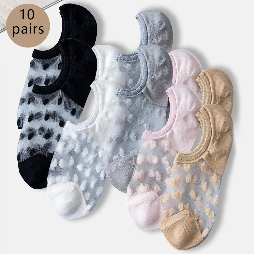 Lace Socks Women Transparent Mesh Sexy Dot Ankle Socks Ultra-Thin Princess Tulle Socks Ladies Spring Summer Female Hosiery