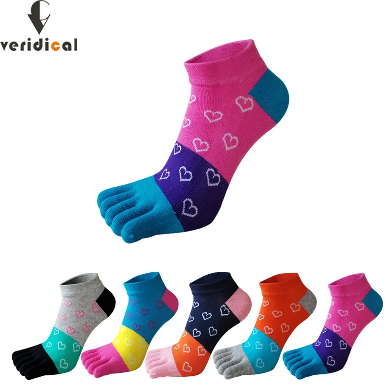 Cute Toe Boat Socks Women Girl Patchwork Love Striped Cotton Shallow Mouth Sweat-Absorbing Casual No Show 5 Finger Ankle Socks
