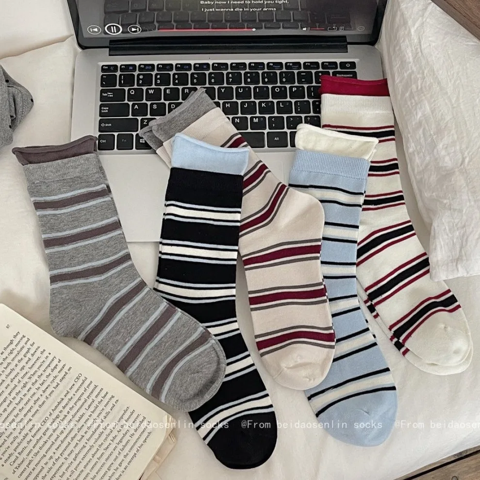 Spring and Summer New Double Ribbed Striped Mid-tube Socks for Men and Women Casual Sports Fashion Brand Stockings  Read more