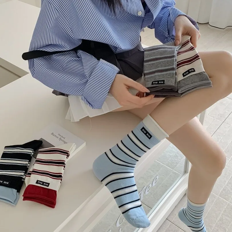 Spring and Summer New Striped Women's Mid-tube Socks Double Ribbed Stockings Casual Sports Men's and Women's Cotton Socks  Read more