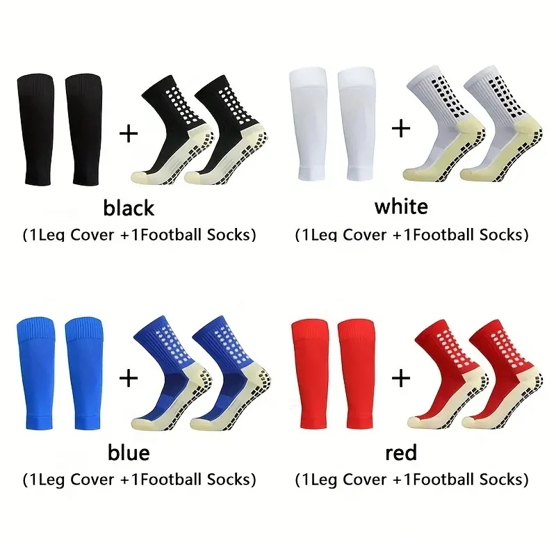 2 Pairs Set Professional Training Breathable Football Socks Men Women Non-slip Silicone Soccer Socks With Leg Cover Sports Set