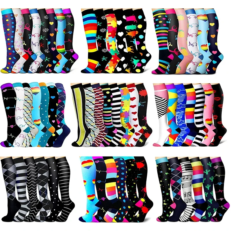 3/6/7/8 Pairs Lot Pack Women Men Elastic Sports Climbing Cycling Beautiful Leg Compression Socks Stockings Running Nurse Sox