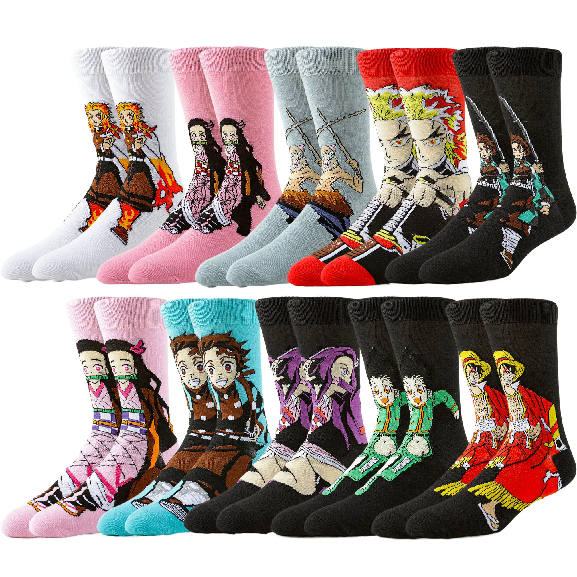 5Pairs BANDAI ONE PIECE Demon Slayer Unisex Novelty Funny Casual Crew Socks Cartoon Anime Hip Hop Street Fashion for Men Women