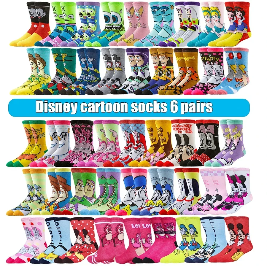 6pairs Random Color Potdemiel Disney Cartoon Anime Socks Hip Hop Street Fashion Novelty Funny Casual Crew Socks for Men Women