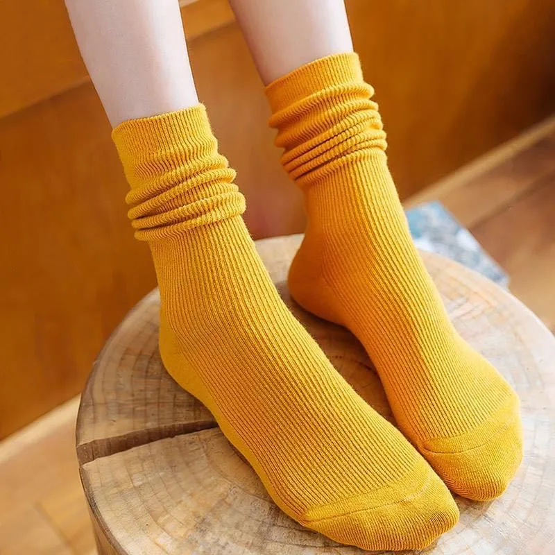 Women Socks Japanese Fashion Cotton Knitting Crew Socks Casual Solid Color Colllege Style School Girls Loose Long Socks Women  Read more