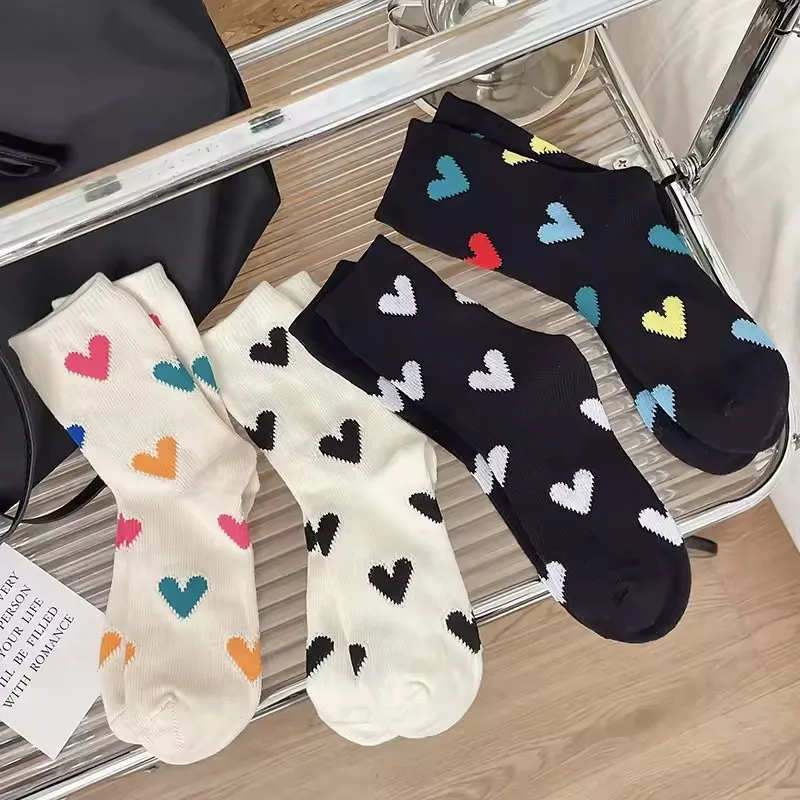 2 Pairs Funny Loving Red Heart Pattern Men Women Crew Socks Street Trend Crew Socks Gift Men Husband Cute Socks Novelty Funky