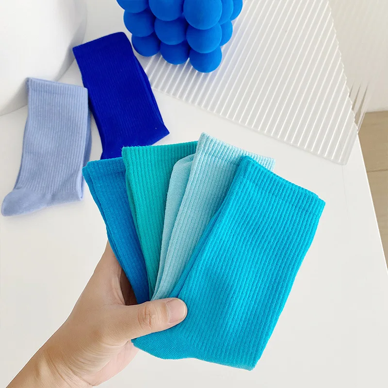 Women Crew Socks Gift For Girls Blue Korean Fashion Retro Casual Street Sports Harajuku Solid Color Calcetines Mujer Streetwear
