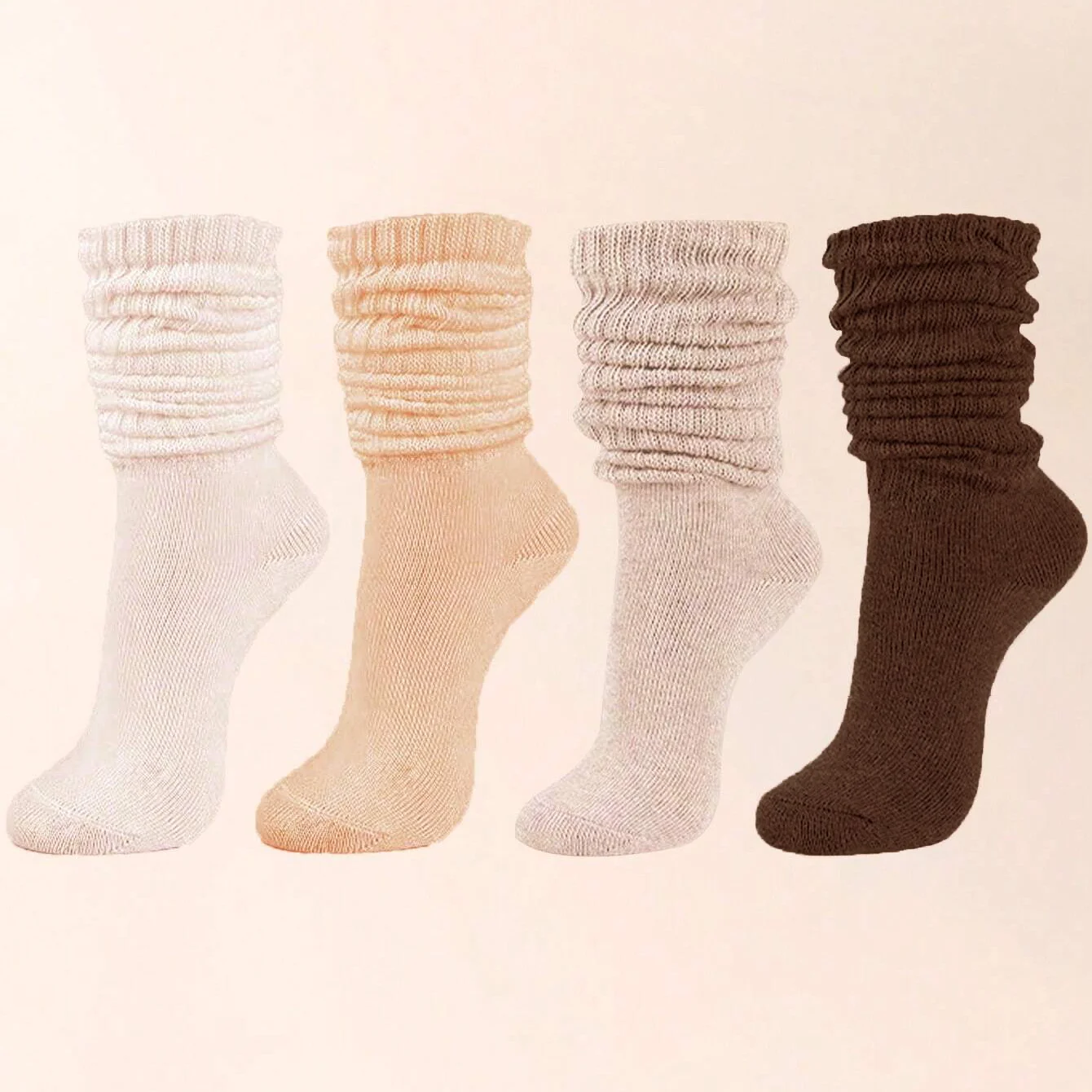 4 Pairs Slouch Socks Women's Soft Knitted Boot Socks Solid Color Compression Socks Bubble Socks Crew Socks Fall Autumn