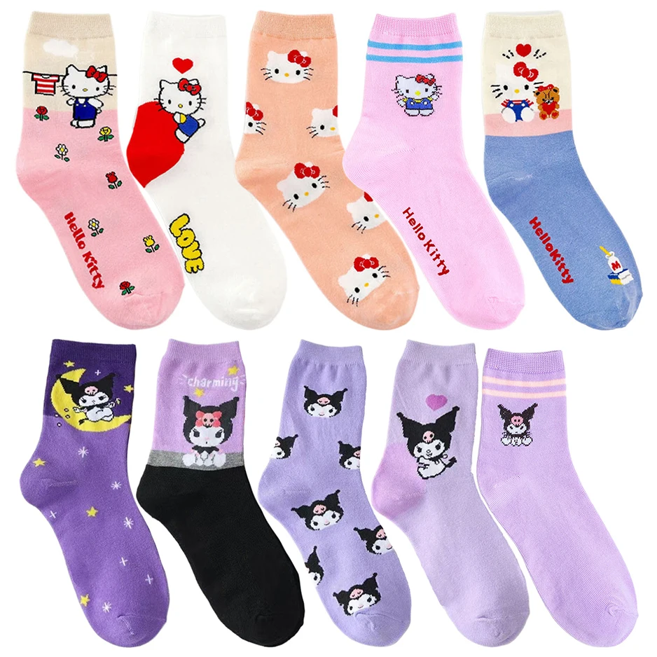 5/10Pair Potdemiel Disney Men Women Hip Hop Street Socks Cartoon Anime Novelty Funny Casual Crew Socks Comfortable Anime Prints