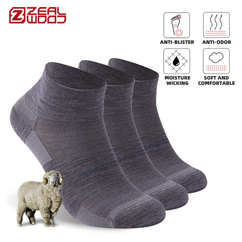ZEALWOOD Merino Wool Running Socks Men Women No Show/Ankle/Crew Anti-blister Cushion Athletic Socks Ultra-Light Tennis 1/3 Pairs