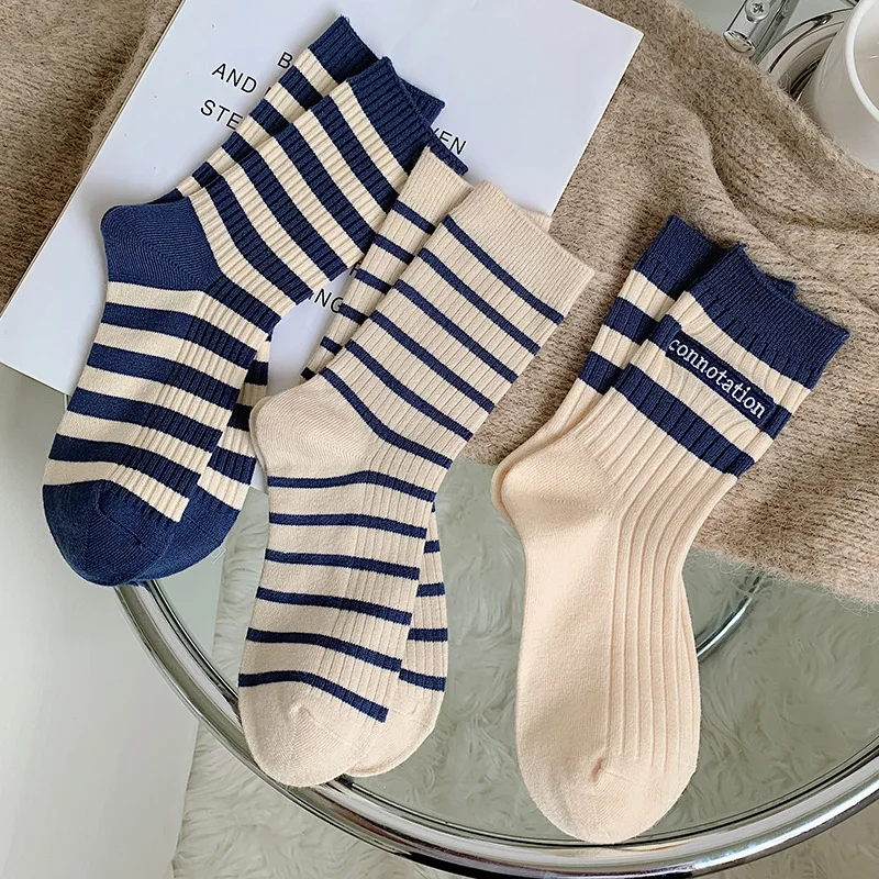 Autumn Women Sports Socks Stripe Fashion Harajuku Hip Hop Female Cotton Sock Unisex Skateboard Street Middle Tube Socks