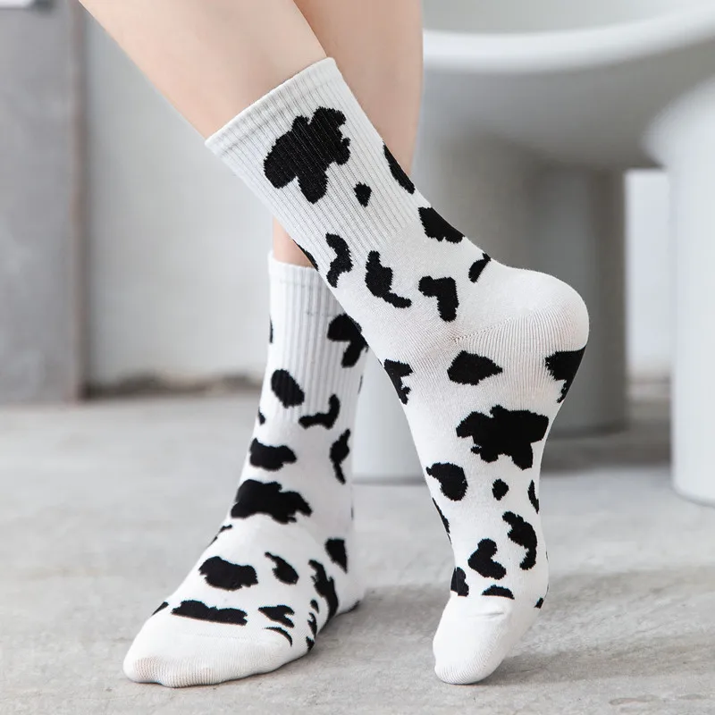 Cute Cow Print Socks for Women White Black Funny Cartoon Animals Sock Girls on Sale Fashion Casual Streetwear Skateboard