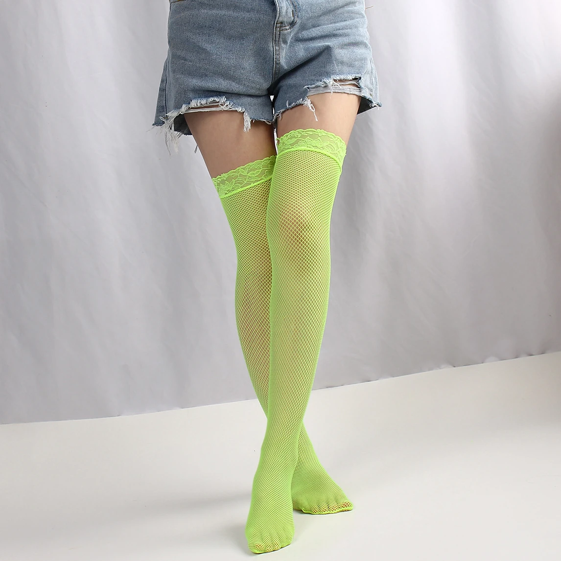Erotic Lace Knee High Socks for Women Lingerie Small Mesh Thigh High Hosiery Green Yellow Pink Blue Purple White Sexy Stockings