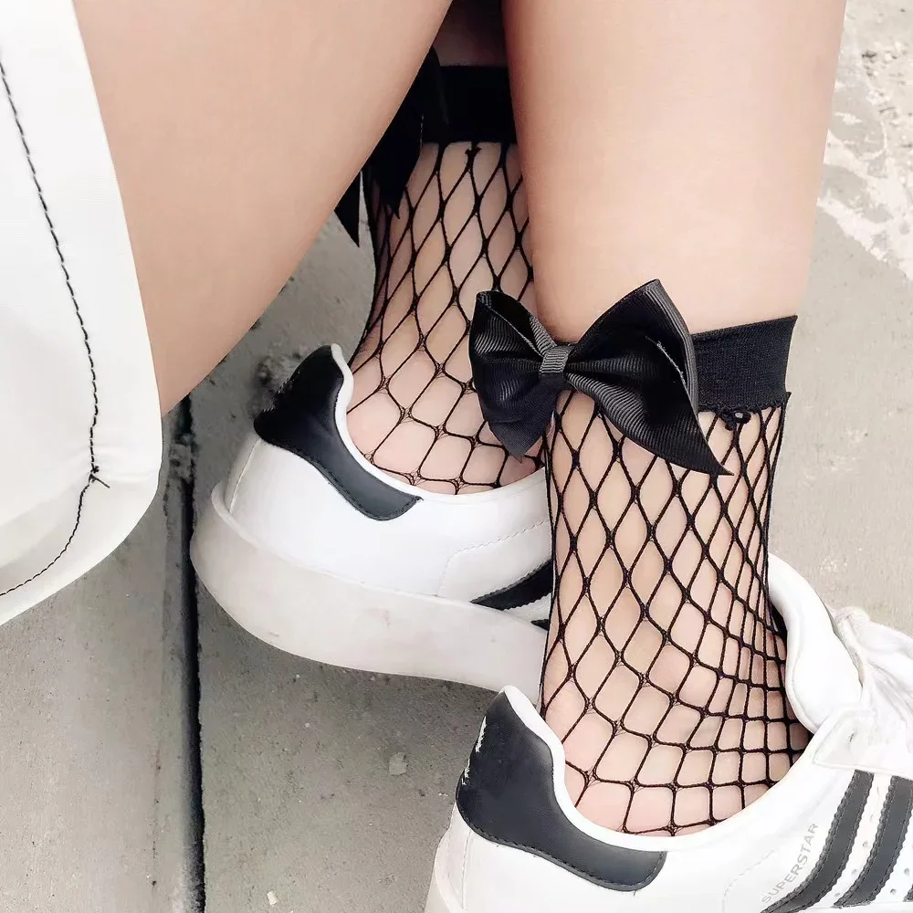 Woman Socks Mesh Socks Bow Fishnet Ankle High Lace Fish Net Vintage Short Fashion Summer Girl kawaii Socks 2024