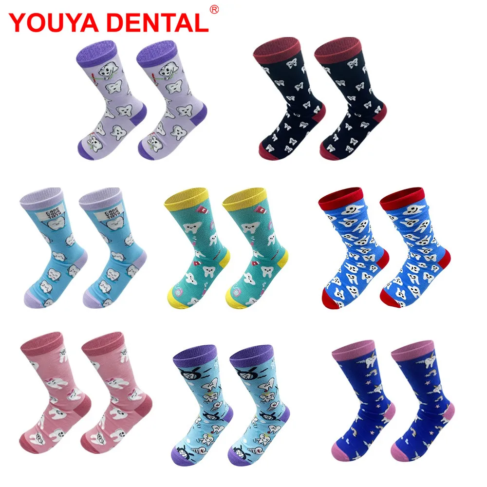 1Pair Cute Tooth Art Pattern Socks Breathable Comfortable Men Women Sports Stockings Printed Kawaii Funny Hosiery Dentistry Gift