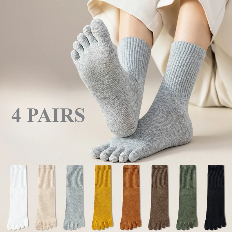 4 Pairs Five Finger Socks Women High Quality Cotton Toe Socks Autumn Spring Middle Tube Sports Socks with Separate Fingers