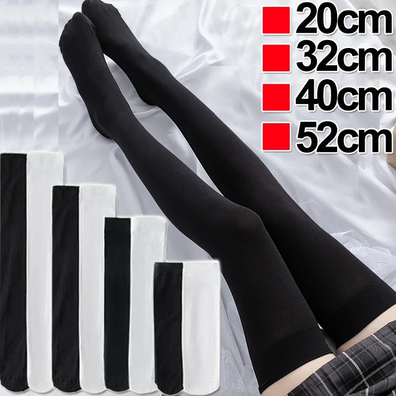 4Size Sexy Black White Soild Color Long Socks Women Over Knee Thigh High Over The Knee Stockings Lolita Ladies Girls Knee Socks