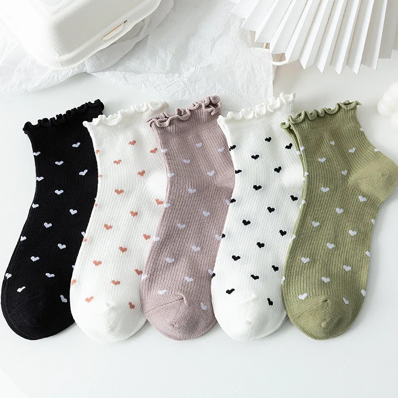 Cute Love Heart Printed Women Socks Pack Japanese Simplicity Elegant Ladies Short Sox Soft Breathable Wife