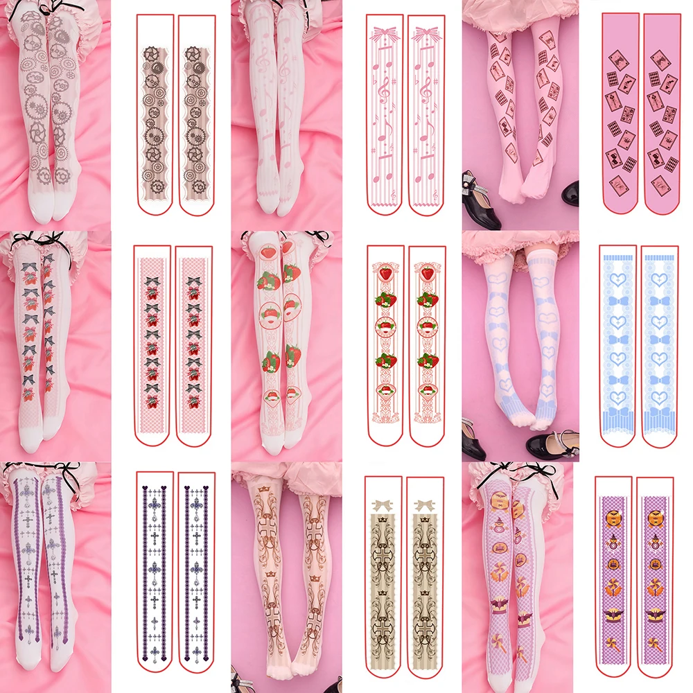 Lolita Velvet Stockings Women Sweet Princess Over The Knee Cospaly Alice Japanese Girl Love Bow Print Pink Thigh Silk Stockings