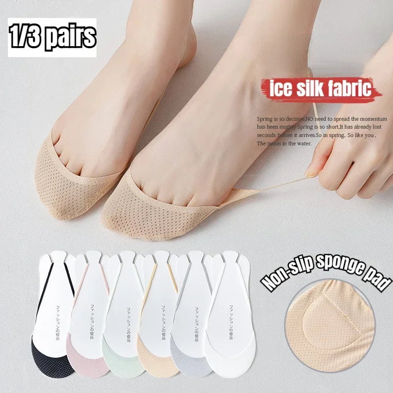 1/3 Pairs Invisible Boat Socks Women Summer Silicone Non-Slip Socks for High Heels Shoes Ice Silk Thin Half-Palm Suspender New