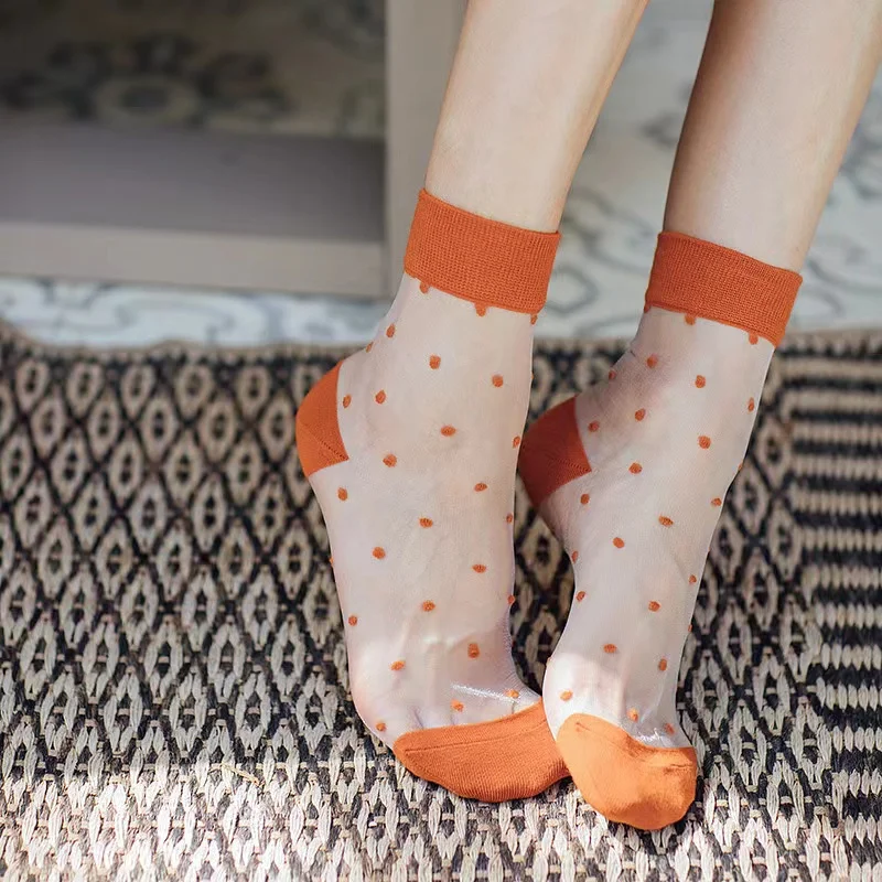 New Summer Women Socks Fashion Elastic Transparent Ultra-thin Mesh Socks Harajuku Polka Dot Glass Fiber Silk Female Short Socks