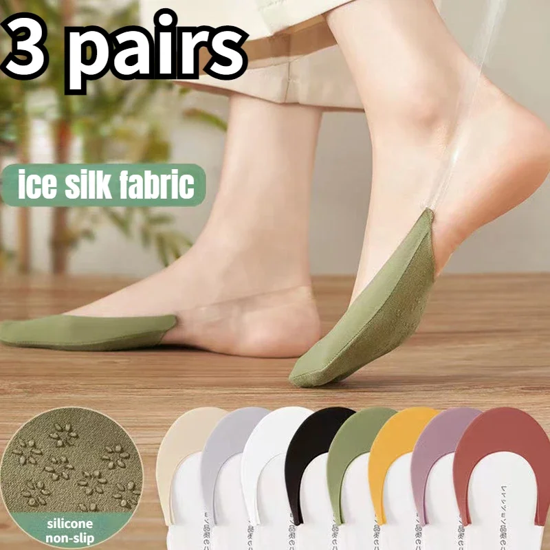 3 Pairs Invisible Boat Socks Women Summer Silicone Non-Slip Socks for High Heels Shoes Ice Silk Thin Half-Palm Suspender New