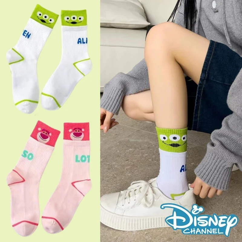 Disney Lotso Socks Women Breathable Cotton Casual Sports Sock Girls Student Autumn Winter Kawaii Mid Tube Skateboard Socks Gift